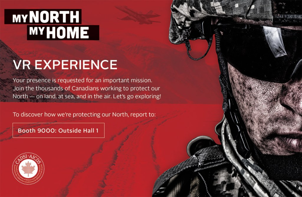 This is an ad that was included in the event publication for the Canadian Association of Defence and Security Industries’ (CADSI) annual trade show in 2019. Their booth featured a VR experience that included a real snowmobile that moved for added realism.