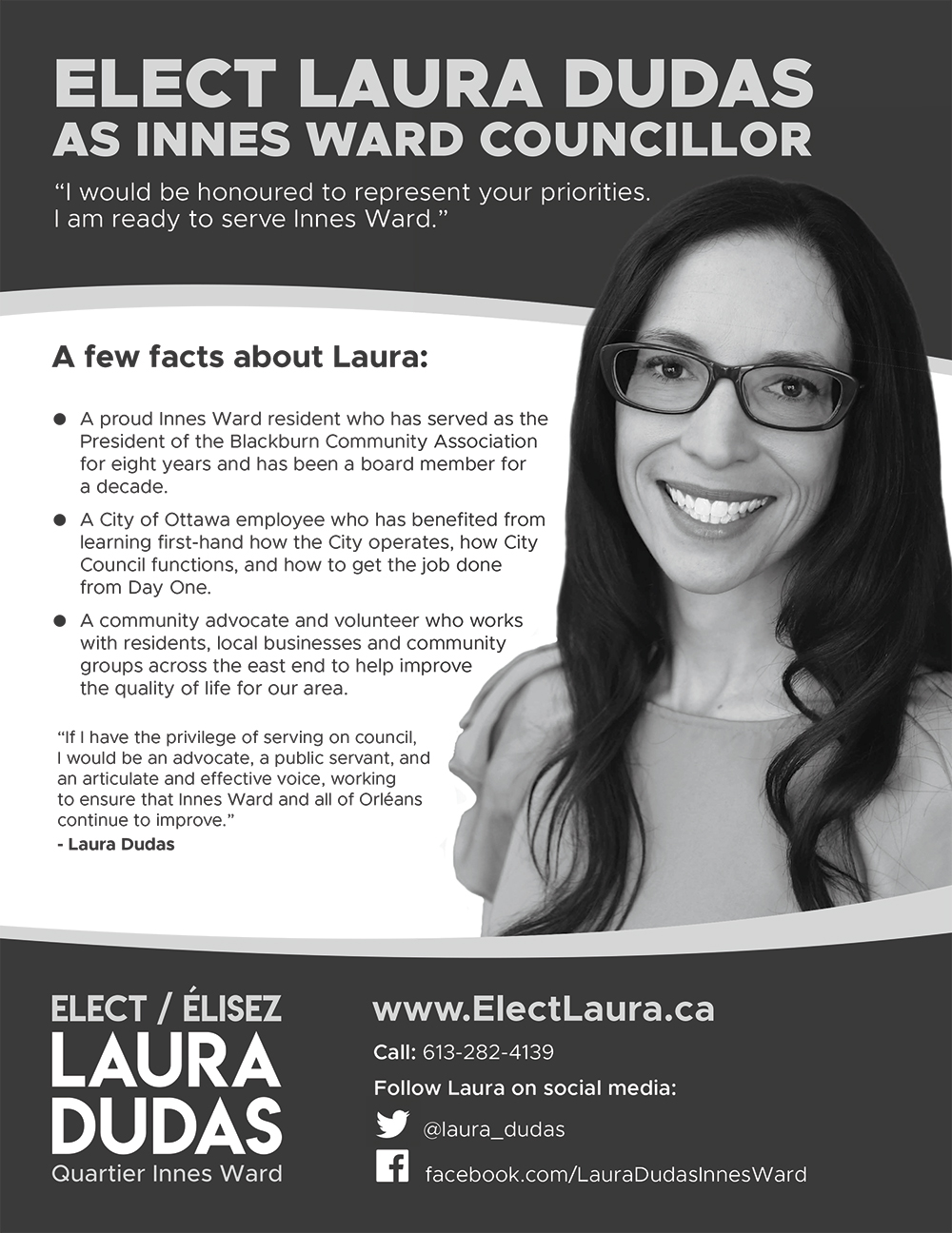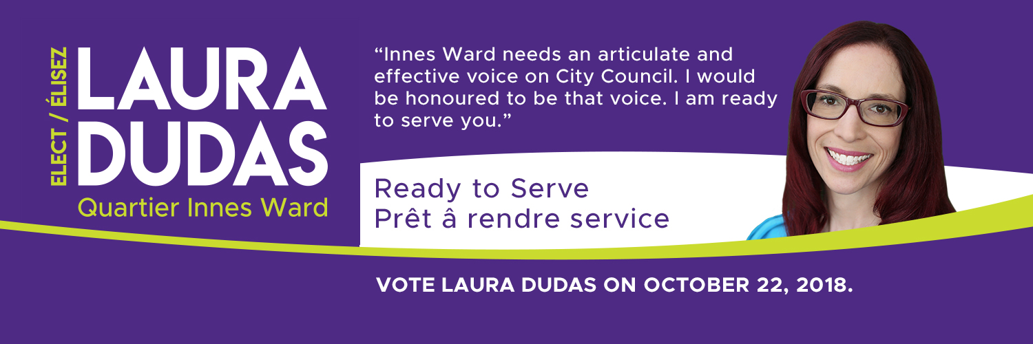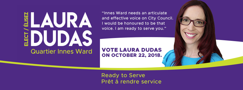 Laura has long been active in supporting the community I live in by acting as president of the community association. After many long years of advocating for us to our City Councillor, she decided to run in Innes Ward and won in the 2018 municipal elections. I was happy to volunteer my time to provide some graphic support, proofing and consultation for her campaign.