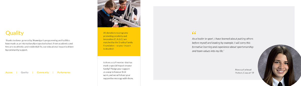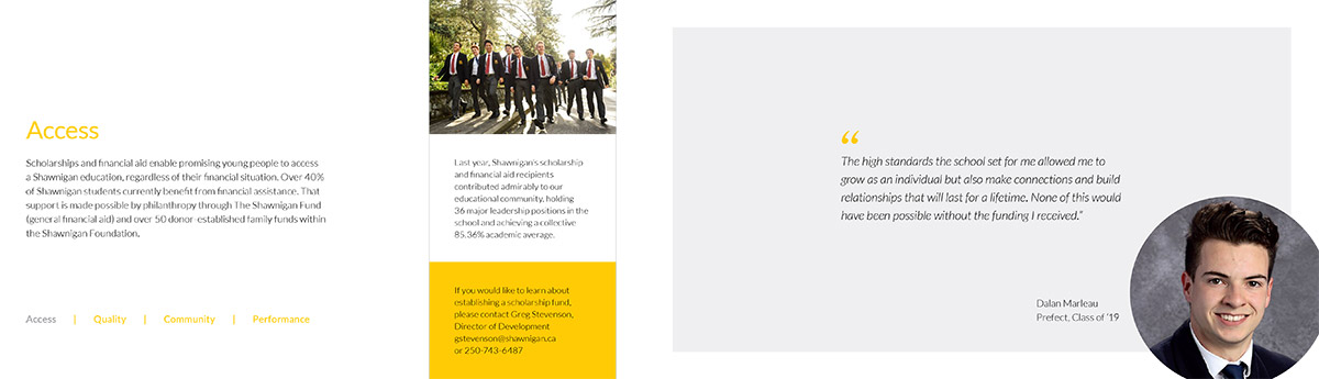 This was a custom mailer to reach out to donors for the annual fundraising drive by Shawinigan School in British Columbia. The majority of their funding comes from donations and allows them to provide scholarship opportunities.