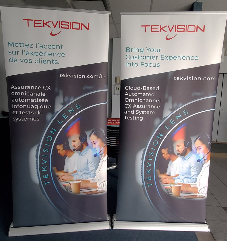 I provided trade show support for TekVision’s engagement at Télécom 2023, which took place in Laval, QC. I designed a postcard which highlighted the offerings and provided both EN and FR languages on opposite sides of the card. I also designed 3′ x 6.5′ retractable banner stands to go behind their table at the show.
